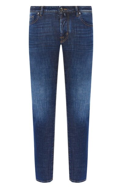 Зауженные джинсы Bard выполнили из слегка выбеленного хлопкового денима с добавлением эластана. Ширинку изделия дополнили брендированным ярлыком, пояс сзади — патчем, а на самом маленьком из пяти карманов вышили литеру J. В комплект включили платок с логотипом марки.