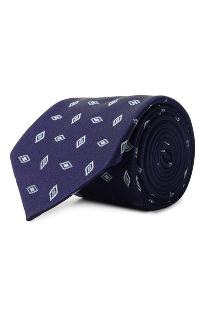 Для изготовления галстука с геометрическим жаккардовым узором использовали прочный шелк малберри. Аксессуар с тонким подкладом и задним швом ручной работы легко укладывается в узел и быстро восстанавливает форму после развязывания.