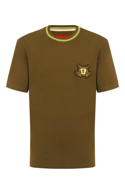 Футболку Dugbytee с контрастной горловиной в рубчик выполнили из хлопкового джерси. Модель прямого кроя украсили геральдическим символом марки спереди.