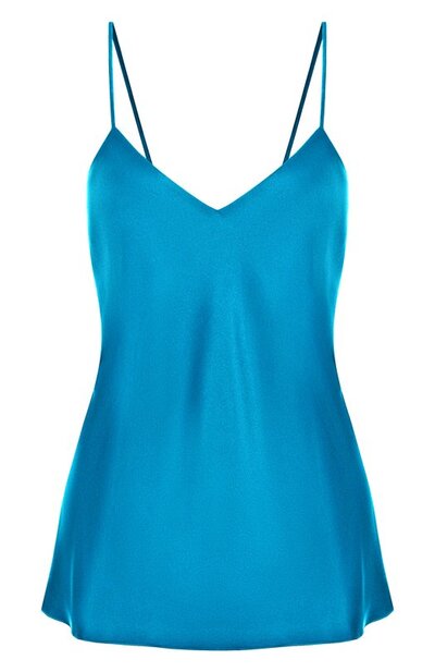 Приталенный топ с V-образным вырезом сшит из струящегося шелкового атласа. Модель из линии Basic Seduction дополнена узкими регулируемыми бретелями.