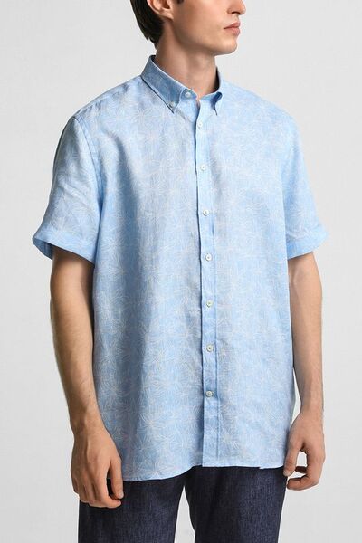 Рубашка льняная с коротким рукавом с принтом Bugatti 7381546 (голубой, lpn30746649)