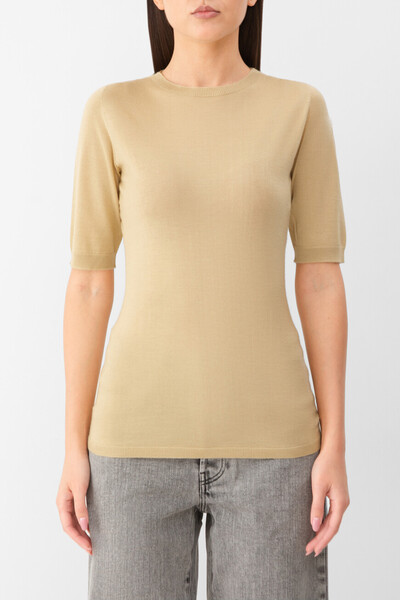 Джемпер прилегающего силуэта от Fabiana Filippi. Для создания изделия с короткими рукавами используется тонкая пряжа на основе гладкого шёлка и кашемира. Модель сочетает в себе универсальный крой и вневременную элегантность. Оптимальную посадку джемпера по фигуре обеспечивают эластичный пояс и манжеты-резинки.