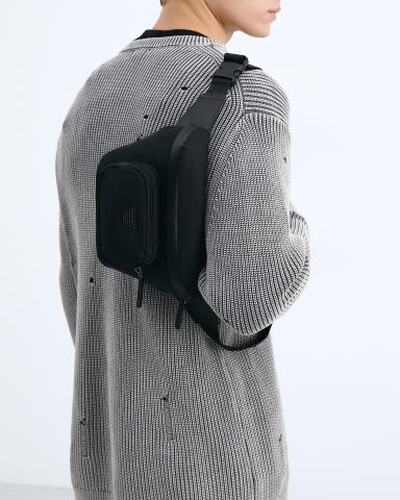 Поясная сумка Emporio Armani выполнена из плотного влагостойкого текстиля. Спереди — накладной закрывающийся карман с фирменной эмблемой бренда. Модель застегивается на молнию. Регулируемый ремешок позволяет носить аксессуар как на талии, так и через плечо. Внутри — дополнительный карман.