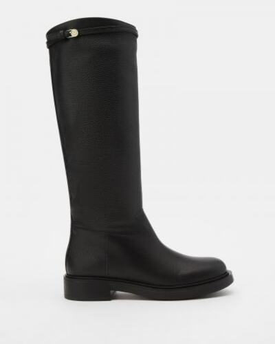 Высокие сапоги Pollini выполнены из натуральной зернистой кожи. Внутри — мягкая подкладка и стелька, обеспечивающие максимальный комфорт и воздухопроницаемость. Голенище средней ширины. Внешняя поверхность сверху декорирована брендированной петлей. Подошва изготовлена из резины.