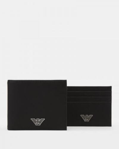 Подарочный набор Emporio Armani в брендированной упаковке состоит из портмоне и картхолдера. Изделия выполнены из тактильной экокожи и украшены фирменной эмблемой. Внутри портмоне — отсек для денег, отдельные слоты для карт и два потайных кармана. У картхолдера — по три слота для карт каждой стороны.
