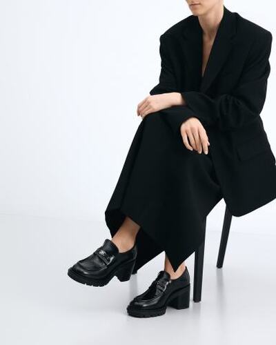 Лоферы Casadei на высоком каблуке выполнены из ультрамягкой натуральной кожи, отполированной до деликатного блеска. Носочная часть очерчена акцентным швом и украшена декоративной перемычкой с фирменным логотипом C-Chain. Внутренняя подкладка и стелька из кожи обеспечивают воздухопроницаемость и максимальный комфорт. Подошва изготовлена из прочной резины.