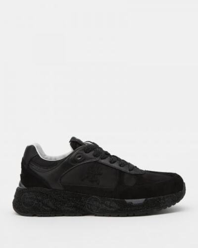 Кроссовки Premiata выполнены из гладкой кожи со вставками из замши. Подкладка и стелька из натуральной кожи обеспечивают максимальный комфорт, адаптируясь к форме стопы. Массивная резиновая подошва дополнена фирменным дизайном и отделана стразами. Язычок декорирован логотипом, а боковые поверхности и задник — эмблемой.