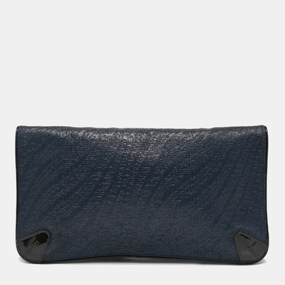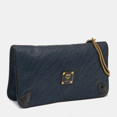 MCM Navy Blue/Brown Coated Raffia and Patent Leather Flap Shoulder Bag 1192760 (lpn30752546)