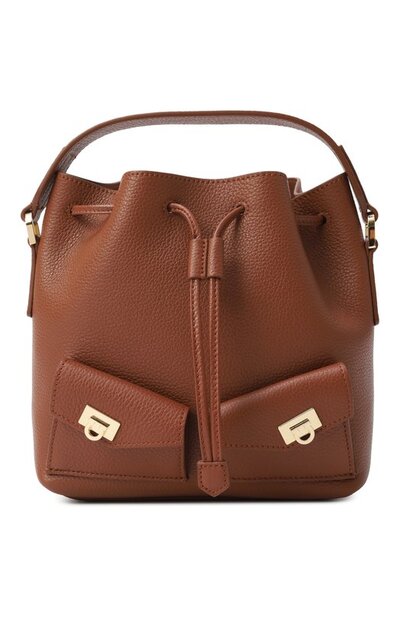 Для изготовления сумки Multipocket с короткой ручкой и съемным регулируемым ремнем использовали фактурную телячью кожу. Основное отделение затягивается шнуром с фиксатором, а два асимметричных внешних кармана закрываются клапанами с фирменным поворотным замком.
