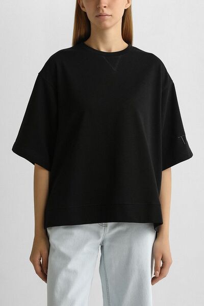 Свитшот хлопковый с укороченным рукавом Twin-Set 7242435 Twin-Set (чёрный, lpn30755876)