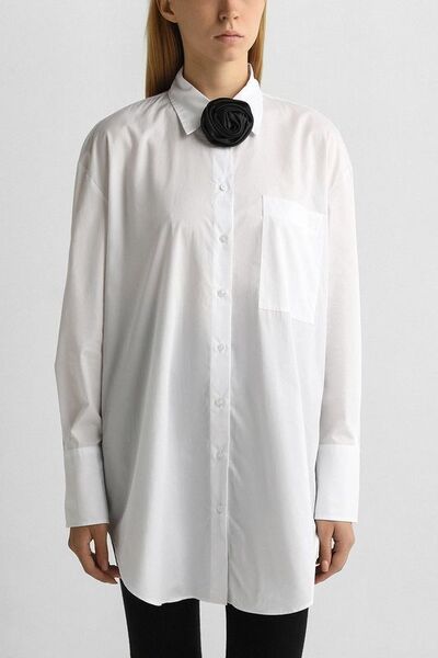 Рубашка хлопковая свободного кроя с цветком Hugo 7941142 (белый, lpn30755897)
