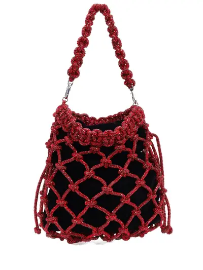 -Сумка из текстиля с декором стразами от ALINE. -Основа из крупной сетки дополнена текстильным бархатистым подкладом со съемной ручкой для носки на карабинах и карманом внутри. -Также предусмотрен длинный ремень для носки на плече.