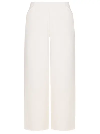 -Белые брюки купажированного состава от ELENA MIRO. -Модель свободного кроя с прорезными карманами и эластичным поясом, который позволяет регулировать высоту посадки.