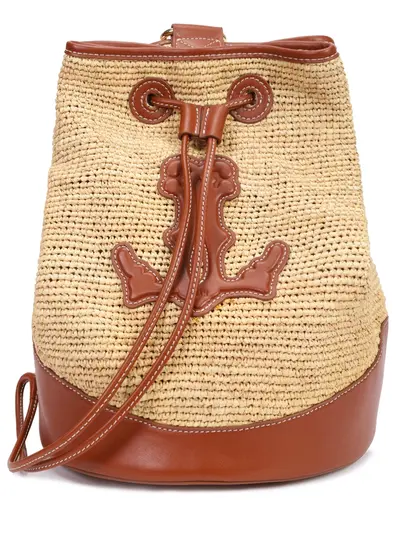 -Плетеная сумка из рафии с отделкой натуральной кожей от LÉAH. -Модель-торба с устойчивым основанием, основным отделением с кулиской-утяжкой, широким плетеным ремнем на плечо и логотипом бренда спереди.