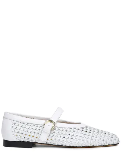 -Белые плетеные балетки из натуральной кожи от DOUCAL'S. -Модель с вытянутым мысом, поперечным регулируемым ремешком с пряжкой на подъеме, гибкой подошвой, низким каблуком, внутренней отделкой из натуральной кожи.
