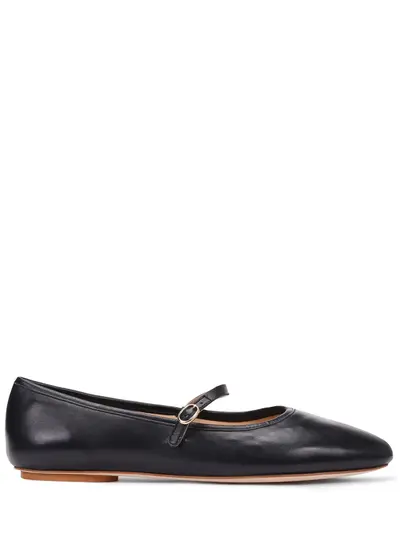 -Черные балетки из натуральной кожи от FABIO RUSCONI. -Модель с округлым мысом, гибкой подошвой, низким каблуком, поперечным узким ремешком с пряжкой на подъеме, внутренней отделкой из натуральной кожи.