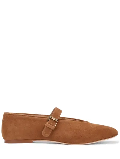 -Коричневые балетки из бархатистой замши от FABIO RUSCONI. -Модель с округлым мысом, ремешками с пряжками на подъеме, гибкой подошвой, низким каблуком, стелькой из натуральной кожи.
