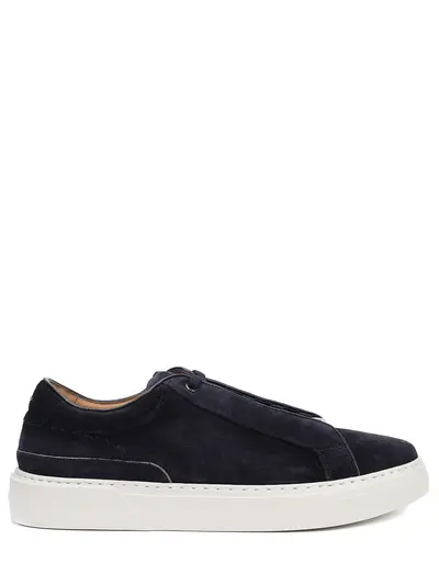 -Темно-синие кеды из бархатистой замши от BOSS BLACK.