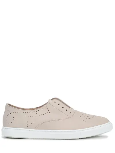-Бежевые кеды из нубука от FRATELLI ROSSETTI. -Модель с округлым мысом, толстой резиновой подошвой, декоративной перфорацией, внутренней отделкой из натуральной кожи. -Пару можно носить как без шнурков, так и используя белые комплектные.
