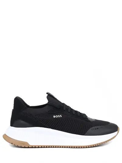 -Черные кроссовки из плотного трикотажа с частичным полимерным покрытием от BOSS BLACK.