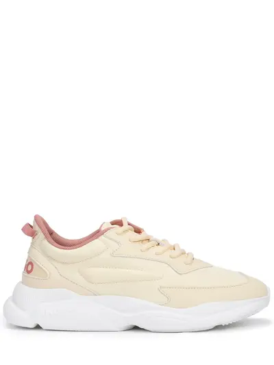-Кроссовки из текстиля и легкого полимера в кремовом оттенке от HUGO. -Модель с закругленным прорезиненным мысом, функциональной шнуровкой, толстой легкой подошвой, тиснеными логотипами бренда на задниках, внутренней отделкой из текстиля.