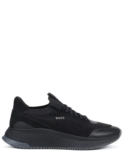 -Черные кроссовки из плотного трикотажа с частичным полимерным покрытием от BOSS BLACK.