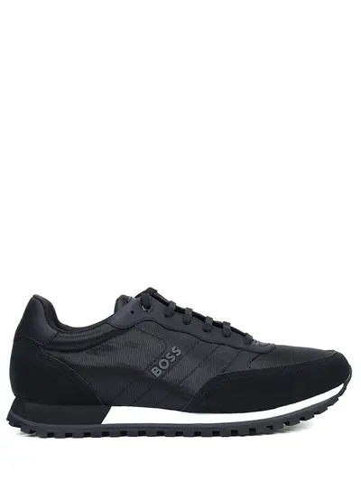 -Черные кроссовки из замши и текстиля от BOSS BLACK.