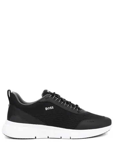 -Черные кроссовки из плотного трикотажа с частичным полимерным покрытием от BOSS BLACK.