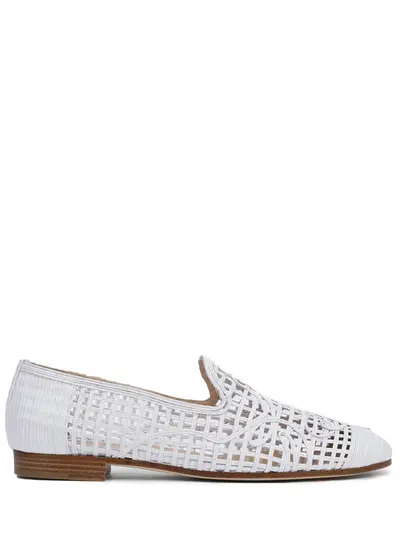 -Белые плетеные лоферы из натуральной кожи от FRATELLI ROSSETTI. -Модель с вытянутым мысом, гибкой подошвой, низким каблуком, внутренней отделкой из натуральной кожи.