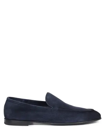 -Темно-синие лоферы из бархатистой замши от BARRETT. -Модель с вытянутым мысом, форму которого подчеркивает объемный декоративный шов, гибкой подошвой, низким каблуком, внутренней отделкой из натуральной кожи.