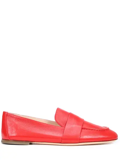 -Красные лоферы из мягкой кожи от AGL. -Модель с вытянутым мысом, форму которого подчеркивает декоративный шов, широкими поперечными ремешками на подъеме, внутренней отделкой из натуральной кожи, гибкой подошвой и низким каблуком.
