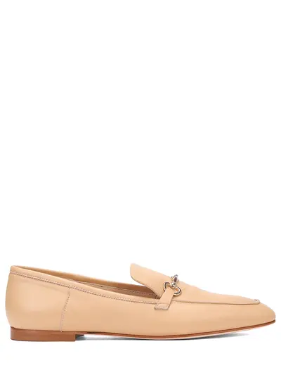 -Бежевые лоферы из натуральной кожи от FABIO RUSCONI. -Модель с вытянутым мысом, форму которого подчеркивает объемный декоративный шов, пряжкой-трензелем на подъеме, гибкой подошвой, низким каблуком, внутренней отделкой из натуральной кожи.
