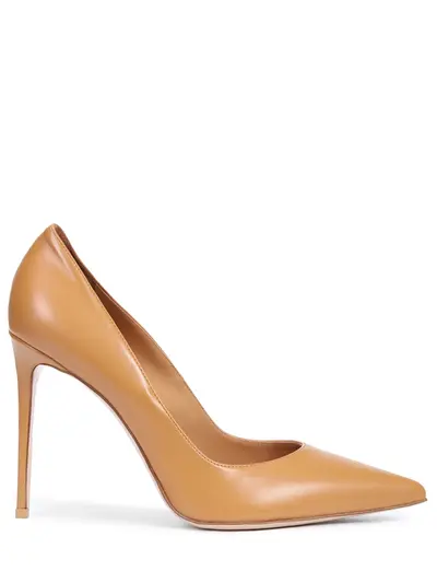 -Бежевые туфли-лодочки из натуральной кожи от LE SILLA. -Модель с зауженным мысом, высоким каблуком-шпилькой, внутренней отделкой из натуральной кожи. -Такая пара дополнит как повседневные образы, так и вечерние.