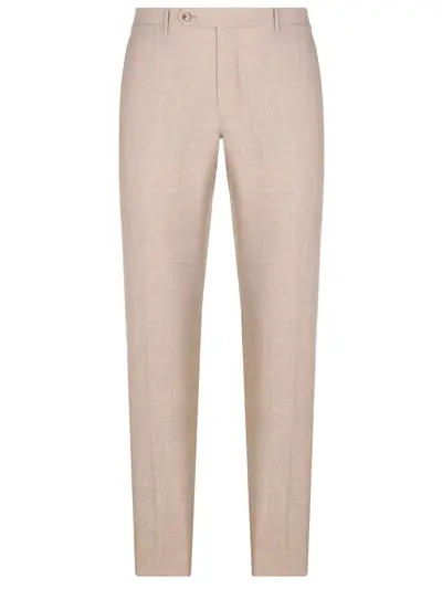 -Бежевые брюки из тонкой смесовой шерсти от BERWICH. -Модель со стандартной посадкой, поясом со шлевками, прорезными карманами, застежкой на молнию и пуговицу.