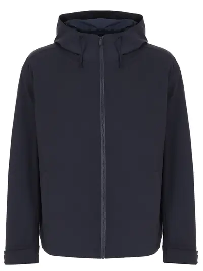 -Темно-синяя куртка из технической ткани с добавлением шерсти эластичной в четырёх направлениях от BOSS BLACK.