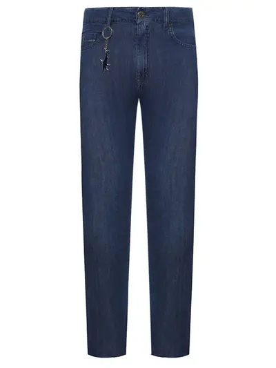 -Синие джинсы купажированного состава от PAUL&SHARK. -Модель с кроем по фигуре, стандартной посадкой, поясом со шлевками, прорезными и накладными карманами, застежкой на молнию и пуговицу, нашивкой с логотипом бренда сзади.