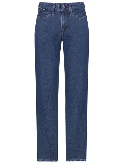-Модель прямого кроя со стандартной посадкой, поясом со шлевками, прорезными и накладными карманами, застежкой на молнию и пуговицу, нашивкой с логотипом бренда сзади.