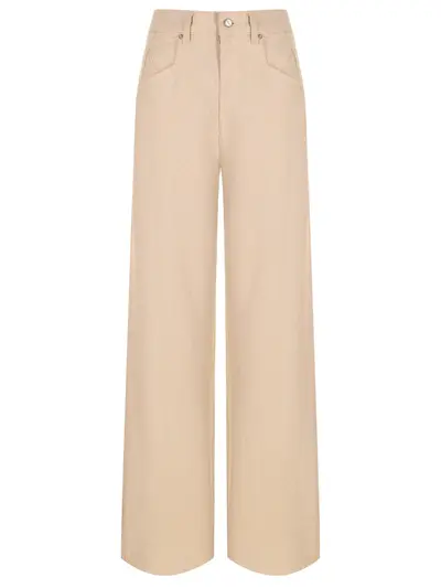 -Модель прямого кроя с высокой посадкой, поясом со шлевками, прорезными и накладными карманами, застежкой на молнию и пуговицу.