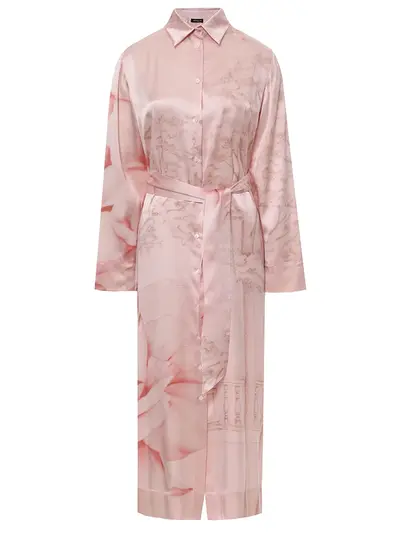-Модель свободного кроя с длинными рукавами, манжетами, отложным воротником, застежкой на пуговицы и высоким разрезом сбоку.