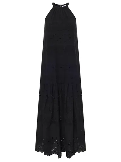 -Черное платье из хлопкового шитья от NOT SHY. -Модель свободного кроя с американской проймой и узкими бретелями. -Легкое платье станет идеальным спутником в жаркие дни и идеально подойдет для создания женственного образа.
