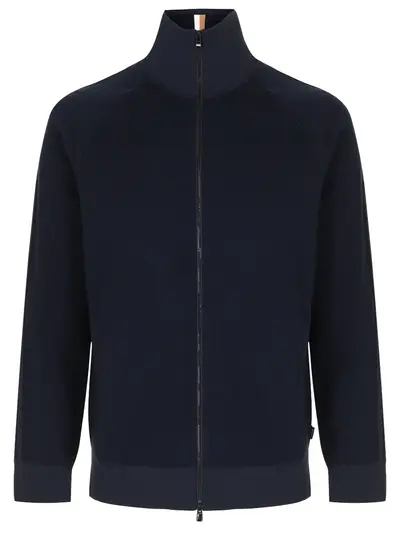 -Темно-синий кардиган из пряжи купажированного состава от BOSS BLACK.