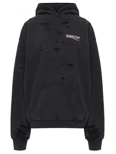 -Черное худи-оверсайз из хлопка от BALENCIAGA.