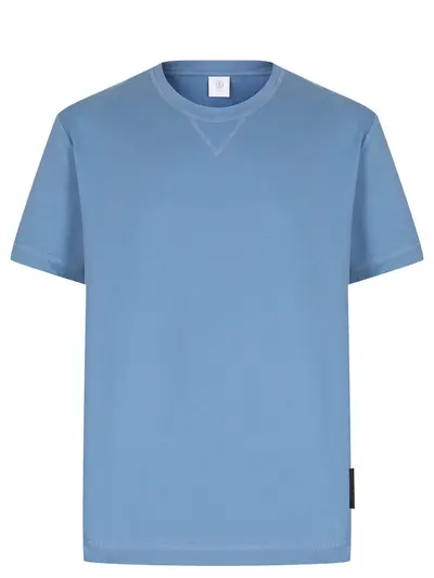 -Голубая футболка из мягкого хлопка от BOGNER. -Модель прямого кроя с короткими рукавами и круглым вырезом горловины станет базой как для спортивных образов, так и для повседневных аутфитов с джинсами, шортами или брюками.