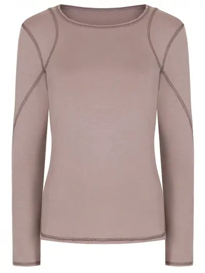 -Коричневый лонгслив из мягкого стрейч-хлопка от BLCV. -Модель полуприлегающего силуэта с округлым вырезом горловины и контрастной оверлочной отстрочкой деталей. -Футболка с длинными рукавами дополнит повседневные образы с джинсами или брюками.