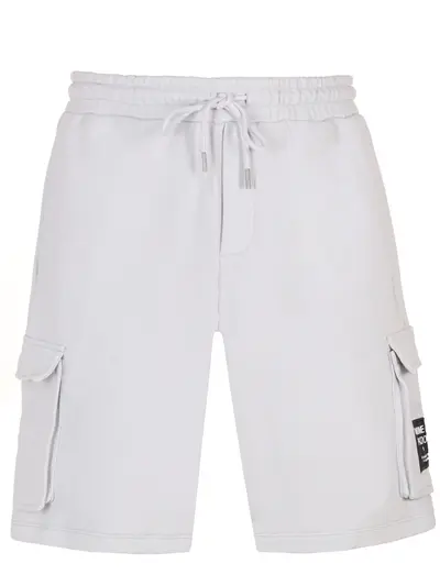 -Светло-серые шорты-карго из смесового хлопка от COMME DES FUCKDOWN. -Модель прямого кроя со стандартной посадкой, эластичным поясом на кулиске, прорезными и накладными карманами, нашивкой с логотипом бренда на бедре.
