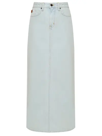 -Голубая юбка-макси из хлопкового денима от JACOB COHEN. -Модель прямого кроя с высокой посадкой, поясом со шлевками, прорезными и накладными карманами, застежкой на молнию и пуговицу, высокой шлицей и нашивкой с логотипом бренда сзади.