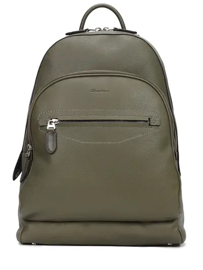 -Зеленый рюкзак из натуральной зернистой кожи от SANTONI.