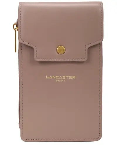 -Бежевая сумка из кожи от LANCASTER. -Модель вытянутой прямоугольной формы с откидным клапаном на кнопке, тисненым логотипом бренда спереди и съемным регулируемым плечевым ремнем на карабинах. -Внутрь можно положить кардхолдер, ключи и помаду.