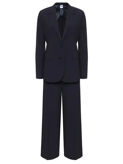 -Темно-синий брючный костюм купажированного состава от ASPESI.