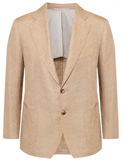 -Бежевый однобортный пиджак из бамбукового волокна и шелка от STILE LATINO.